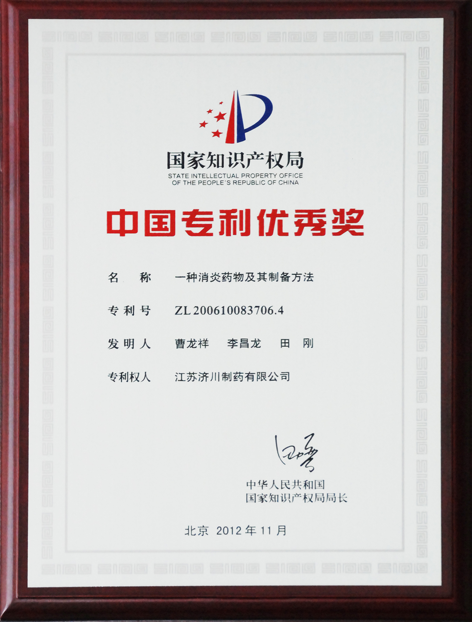 2012蒲地蓝消炎口服液专利荣获第十四届中国专利优秀奖(证书)